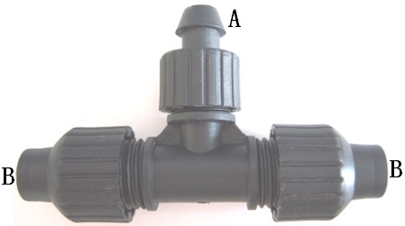 产品介绍:锁母旁三通是一种常用的滴灌配件,它一端与PE水带或PE管连接,一端与滴灌带连接,使用时需购买相配合的打孔器。