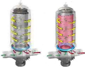 水通过叠片过滤器的进水口进入叠片过滤器内部,水中一些较大的杂质被阻挡在过滤叠片的外部进行表层过滤后,水流通过叠片之间的凹槽(唯一通道)深入滤芯内,对剩余的杂质进行深层过滤后,过滤完毕的水被引向出水口,重新进入水循环系统。
