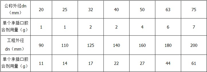 注:PVC胶合剂不得在雨中或水中施工,不得在5℃以下操作