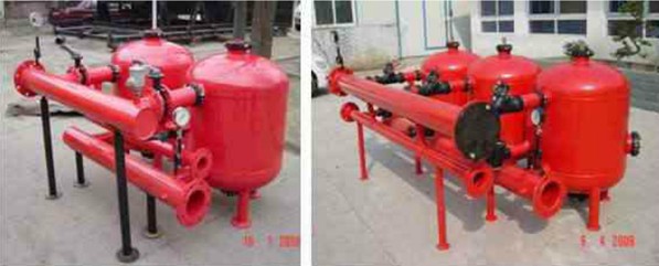 产品介绍:砂石过滤器是一种在灌溉上使用较为普遍的初级过滤器。单个过滤器不能满足过水量要求或为了按照的方便、美观,而进行多个过滤器进行组装,实现组合过滤系统。其中通过对控制系统的改变,可以实现手动和自动两种控制方式。