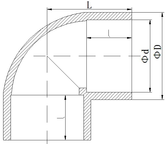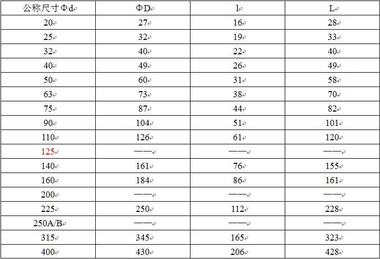 其中“ΦD”表示管件公称外径,“Φd”表示管件公称内径,“L”管件长度,“l”表示管件承插口长度,,1.0MPa=10公斤