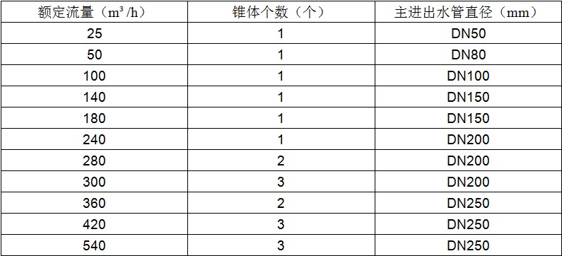 其中“直径DN50mm”表示离心过滤器主进出水管直径50mm,“流量25m3/h”表示离心过滤器额定流量25m3h。